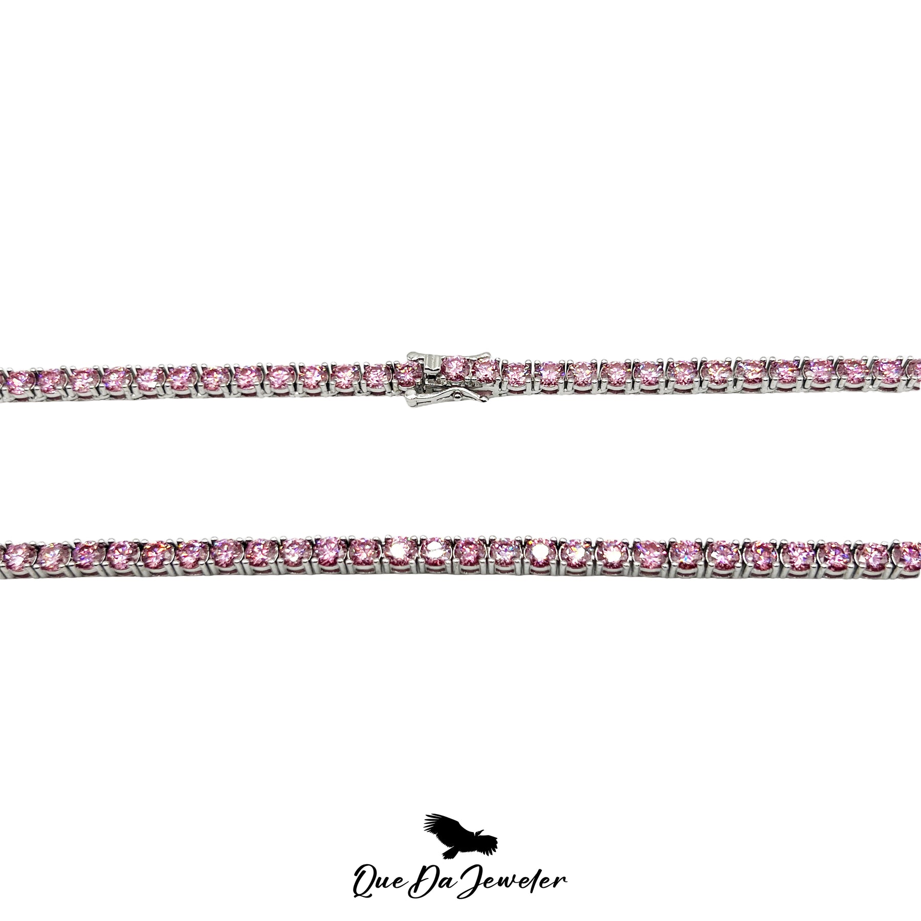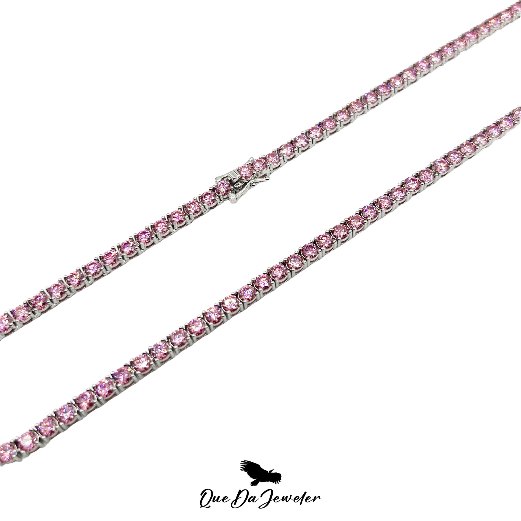 Turn heads instantly with this radiant pink moissanite tennis chain, crafted for those who demand standout elegance. Each stone is hand-selected VVS-clarity moissanite, delivering unmatched brilliance with a unique pink hue that flashes beautifully in every light. Set in a sleek, high-quality mount, this chain blends luxury and personality—perfect for daily wear or special occasions. Durable, eye-catching, and diamond-tester approved, it’s the statement piece your collection has been missing.