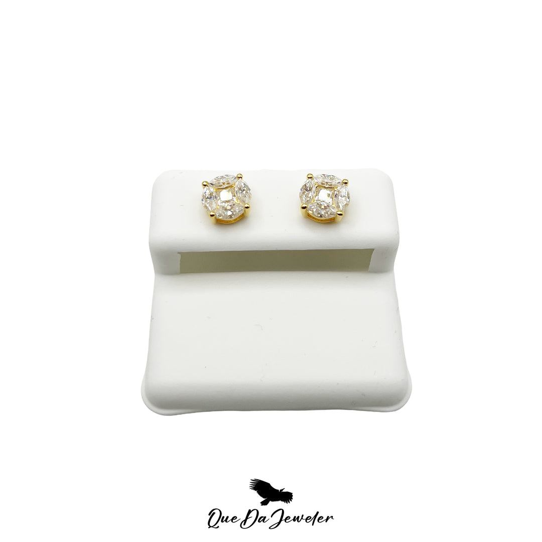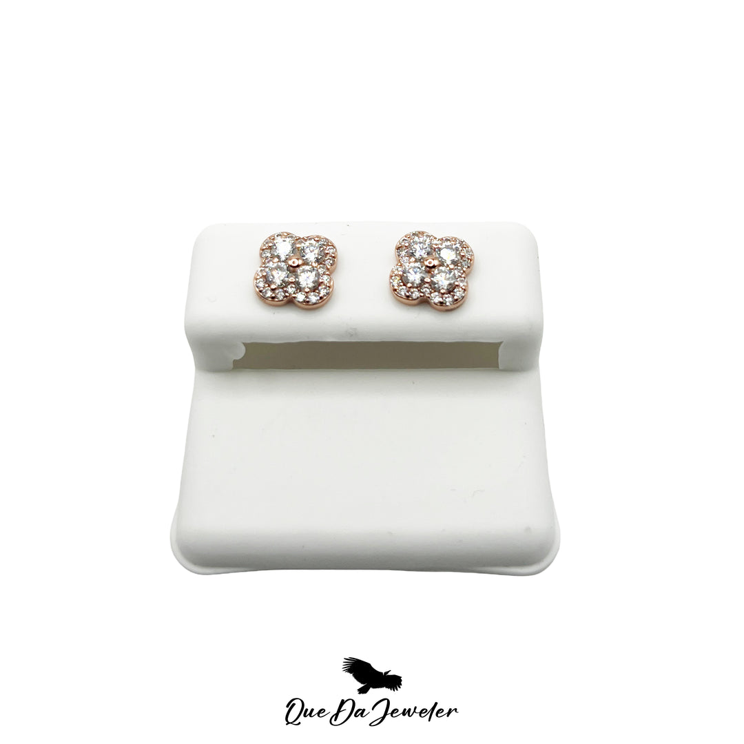 Flower Stud Pink Center Earring VVS Lab Stones .925