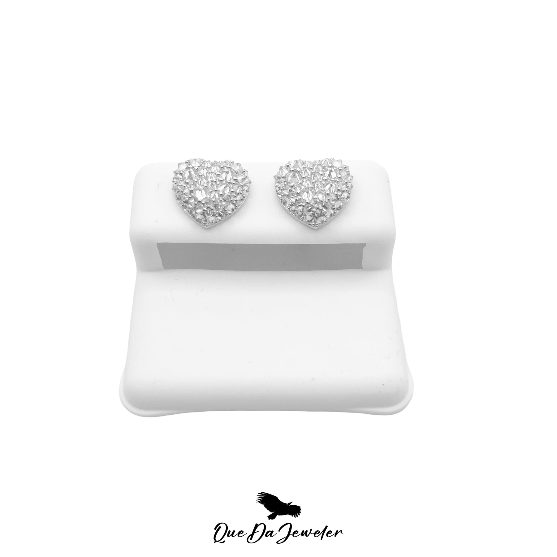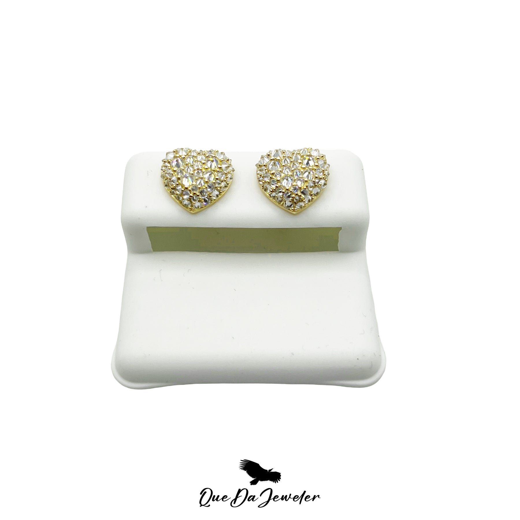 These unique heart-shaped earrings showcase a stunning upside-down mosaic setting, creating a captivating display of light and texture. Each earring is adorned with VVS moissanite stones, precisely arranged to maximize brilliance and fire from every angle. The mosaic pattern adds depth and dimension, while the inverted design gives a bold, modern twist to the romantic heart shape. Crafted with meticulous attention to detail, these earrings combine luxury and creativity—perfect for anyone who loves timeless elegance with a distinctive edge.
