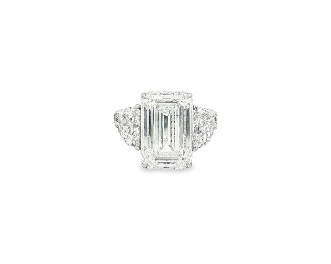 14k Emerald Cut Three Stone Engagement Ring - VS1 with 10.70ct