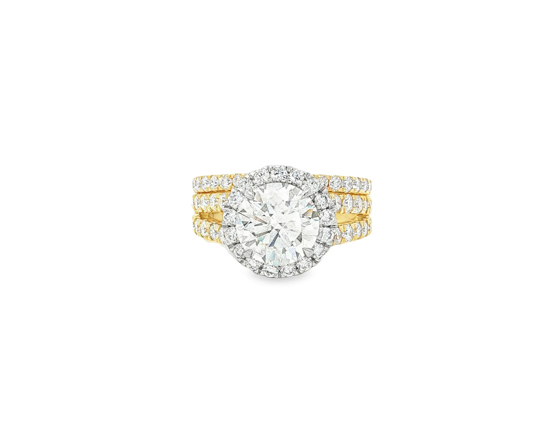 14k Round Cut Halo Diamond Engagement Ring Set 3.80 CT