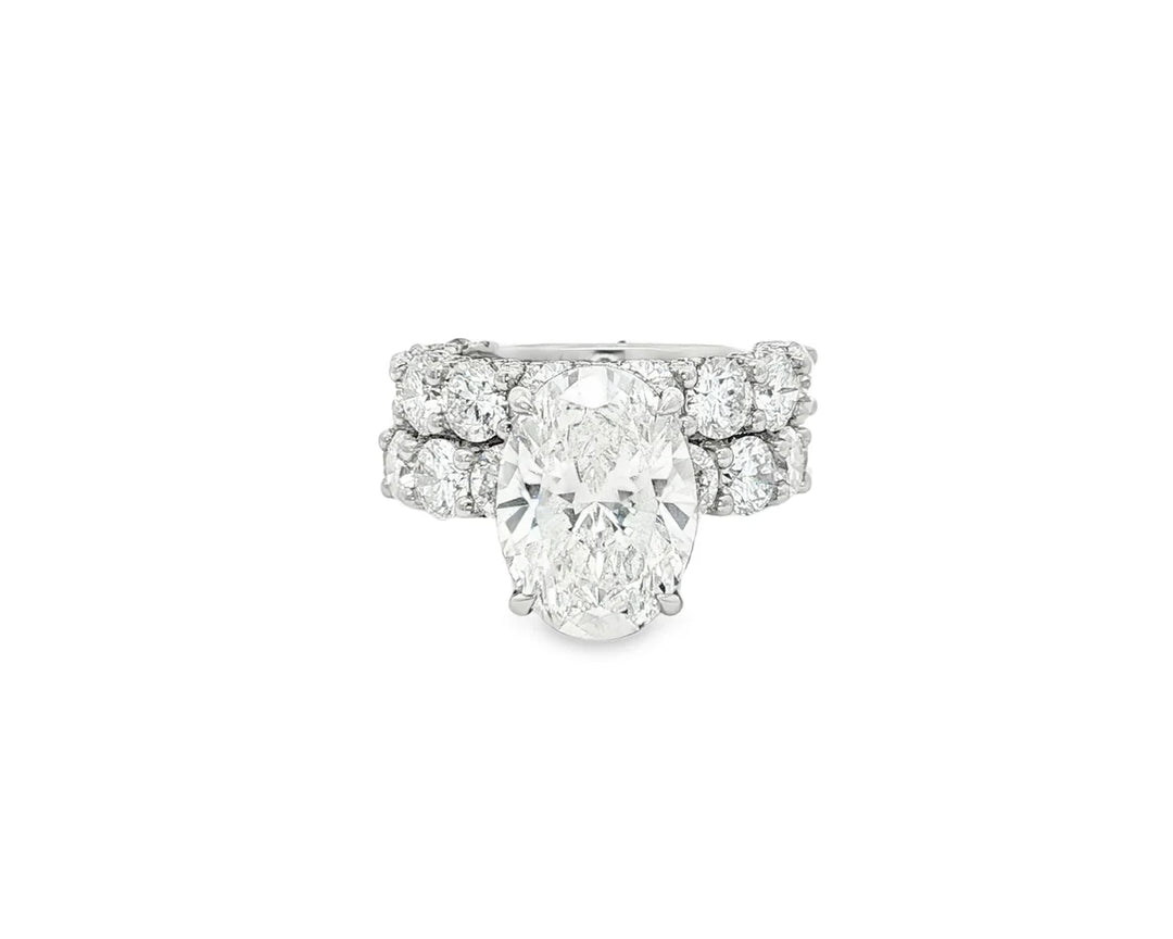14K Oval Cut Pavé Diamond Engagement Ring Set 5.30 CT